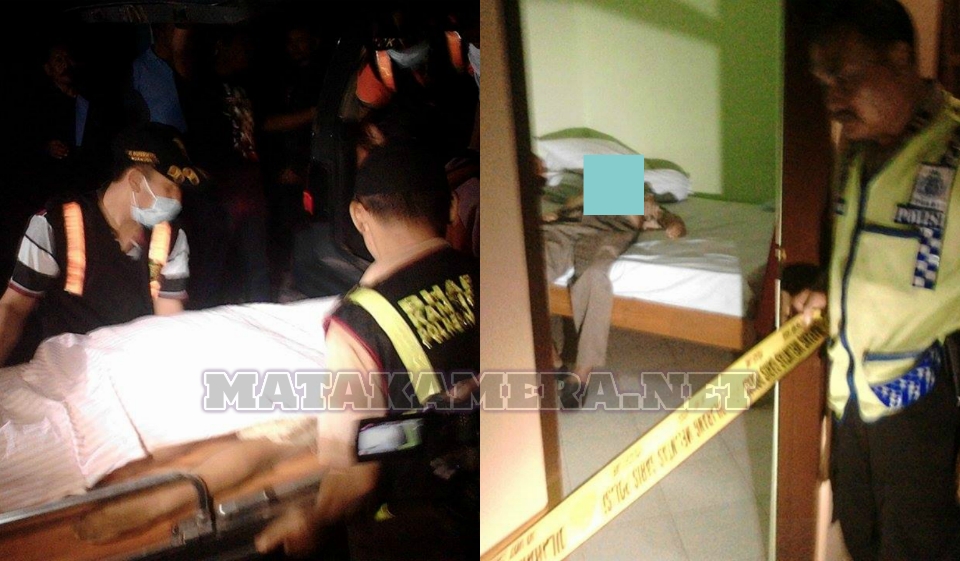 | Jenazah Prawoto ketika dievakuasi dari kamar Wisma Gerung, Desa Pehserut, Sukomoro, Nganjuk, Jawa Timur, 22 Agustus 2016 (matakamera.net) |